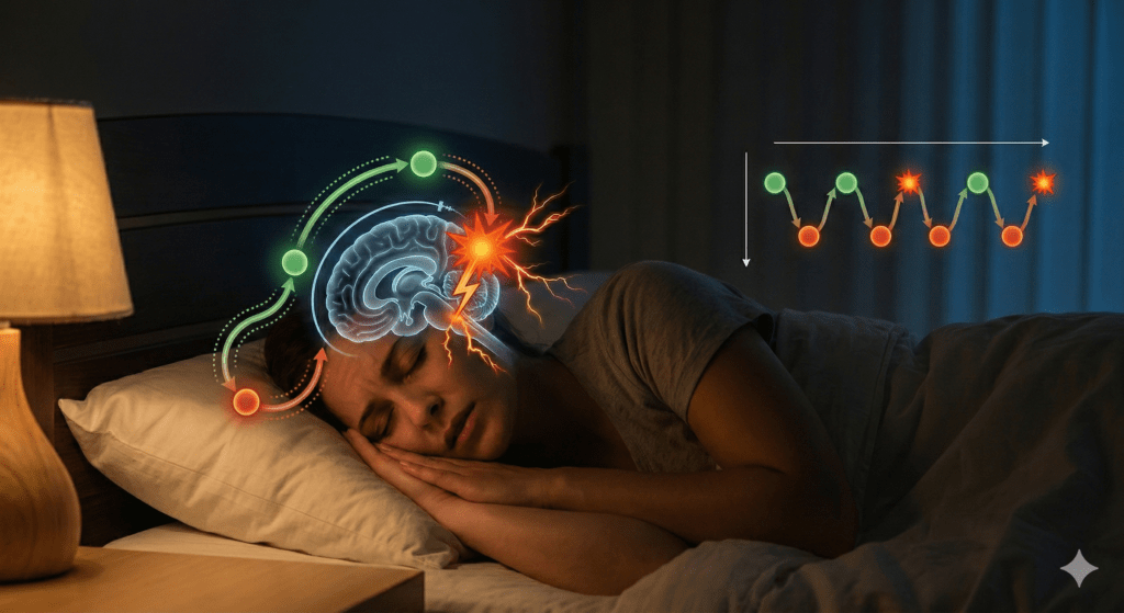 The timing of our attacks is governed by a precise, cruel chronobiology: a “changing of the guard” in the brain stem. Research by Dexter and Hobson explains that our sleep is partitioned into 90 to 100 minute cycles. Attacks typically occur during the transition from REM sleep: the cholinergic or parasympathetic state: to non-REM sleep: the aminergic or sympathetic state.